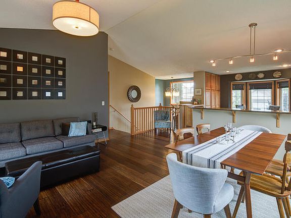 Custom built home features. Open floor plan w/ combined living & ding area Cambria surfaces, stainless kitchen w/ pantry. Custom hand scraped hard wood bamboo floors. 2010 Finished lower level w/ dry bar. Master suite w/ jacuzzi tub, double vanity & separate shower All tile baths, stone fireplace, walk out to large paver patio. Finished laundry area w/Maytag front loads. Walk the private community park w/ pool, hot tub, playground & basketball court. 1 mile to 1-12 schools. Plenty of storage.