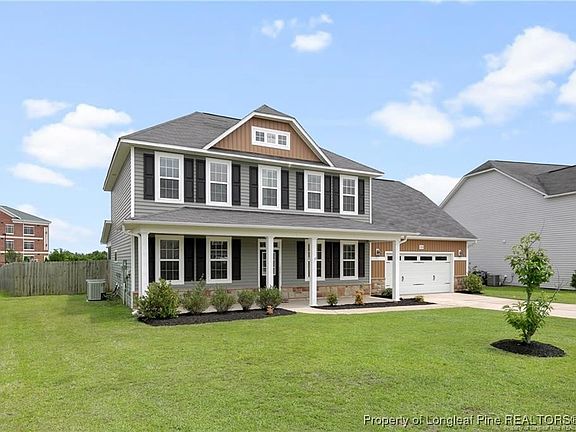 This 5 bedroom home with 3 1/2 bath has it all! Full front covered porch, laminated floor in foyer and formal dining room, formal living room, sun room, huge living room, huge screened patio and privacy fenced. Kitchen has bar height granite counter tops, stainless steel appliances and tall kitchen cabinets. The master bedroom is downstairs with master bath suite, has his and hers vanity, separate shower, huge tub and walk in closet. The other 4 bedrooms and huge bonus room (could be 4th bedroom) are upstairs. This home is close to schools, Methodist college, restaurants, and easy access to Ft Bragg.