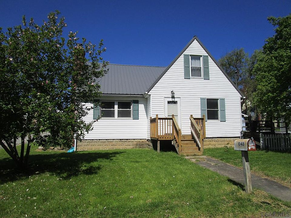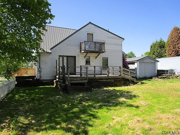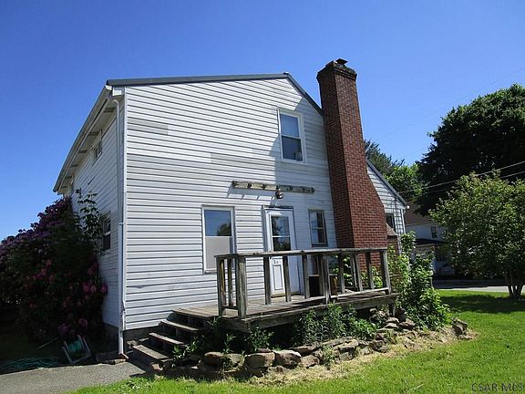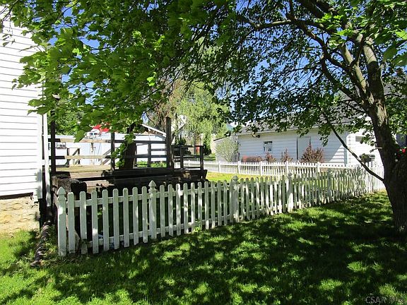 Located on a corner lot is this 2 bedroom, 1-1/2 story home. The kitchen has been updated in recent years and includes the stove and refrigerator. Both the dining area and living room have hardwood flooring and there is a fireplace in the living room. One bedroom is on the first floor, as well as the combination laundry/full bathroom. The second floor is a large bedroom with lots of storage space and 2 skylights. There is a 1 car detached garage. The concrete block walls are what remain from a larger garage that was destroyed by fire.