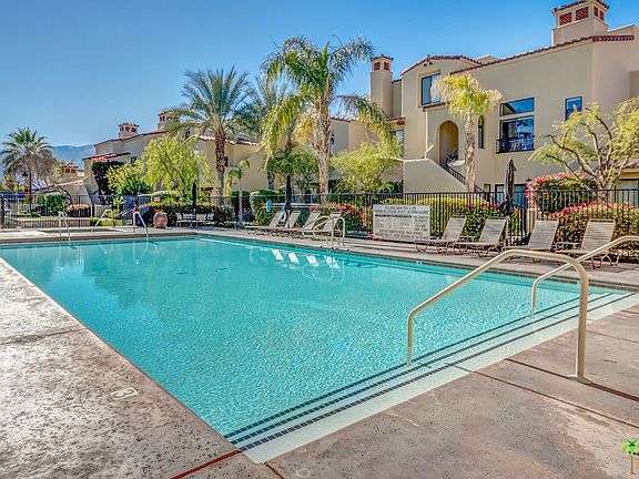 This 2 bedroom, 2.5 bathroom Casa Bella condo with separate extra bonus room and bath is located within blocks of downtown Palm Springs! Enjoy resort-style living with Villorrio's on-site community pool, spa, fitness center and clubhouse complete with indoor and outdoor kitchen areas. There is even a second in-ground spa near the front door of this condo! This three-level condo is divided as follows: Separate all-tiled bonus room located on the ground floor has private entrance, sliding glass door that opens to a patio, interior fireplace, ductless AC unit, and access to the attached two car garage. Take the exterior stairs up to level two where you enter into the 2 bed, 2.5 bath condo that includes a living room with high ceilings, views, fireplace, powder bath and laundry area. Adjacent kitchen with dining area opens to the west-facing deck. The third level includes two Master Suites each offering views as well as their own private bath. Come check out Villorrio today!