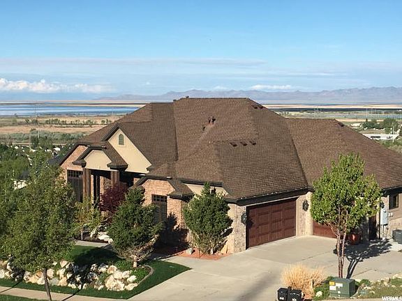 Fabulous Farmington home with gorgeous views from every room. Walk into the vaulted and spacious entry on the porcelain tile and look through the large gas log fireplace to spectacular valley views. The wrap around deck provides panoramic views from North Salt Lake to the south and Ogden to the north. A new awe inspiring sunset over Antelope Island awaits you every day. Plenty of counter and cabinet space in the open kitchen overlooking the family room and built-in entertainment center. Master bedroom features a walk-in travertine shower and jetted tub all with private access to the screened-in portion of the deck. The day light basement with its nine foot plus ceilings is a totally self-contained Mother-in- Law suite complete with laundry room and wheel chair accessible doorways and bathroom. A very large secure and fireproof vault is also located downstairs with the under garage space just waiting for a home theater and shop. All windows have plantation shutters installed. Home is also setup for a permanent natural gas generator. Outside is a large easy to maintain yard with over two dozen trees. Garage space will accommodate two full zed vehicles in the main stall and an RV in the deep secondary garage. Location provides easy access to I-15 and for shopping farmington Station and Parrish Lane are a short drive.
