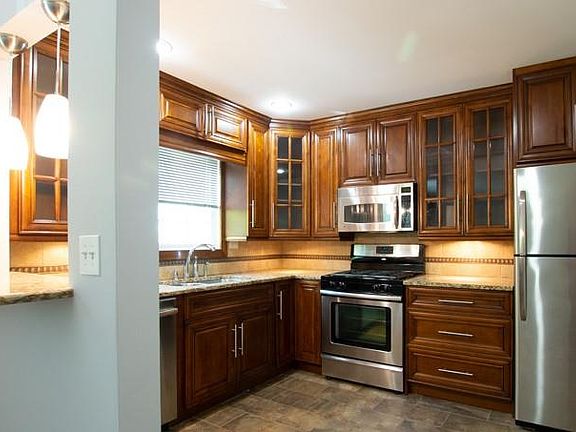 - Kitchen Features: Breakfast Bar, Cabinets Stain, View to Family Room, Other Surface Counters