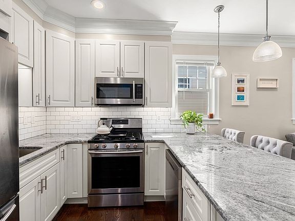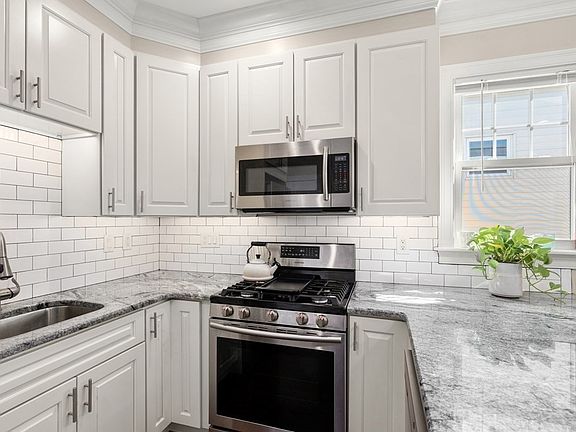Rare opportunity to rent this renovated penthouse with an off-street parking space! This sun-drenched, top-floor, southwest-facing unit boasts an open foyer with a skylight, a designer kitchen with granite counters, gleaming hardwood floors, and all stainless steel appliances. The open-concept floor plan is perfect for hosting, and to top it all off, your own private deck right off the kitchen. Both well-sized full baths feature custom tile work and modern fixtures. And with 3 bedrooms, this unit is ideal for those working from home, or to transform into a guest room. Laundry in-unit. Roof rights and additional storage in the basement. One block to Orient Heights Blue Line station, walking distance to East Boston Greenway, Constitution Beach, Logan Airport, and all major highways. Become a resident of Orient Heights now and take advantage of the already approved Suffolk Downs development featuring 10.5 mil sq ft of residential and retail. Professionally managed.