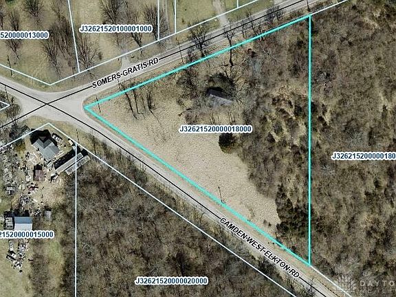 Picturesque wooded lot with mature trees-2.688 acres that's ready for you to build on. Preble Shawnee School District. 560' of road frontage on Camden W Elkton Rd & 496' of road frontage on Somers Gratis Rd. Drive with concrete culvert have been installed. Established electric sevice on pole and natural gas available at the road. Brand new, health department approved, 1500 gallon septic tank with leach lines have also been installed. There is an old well but has not been tested.