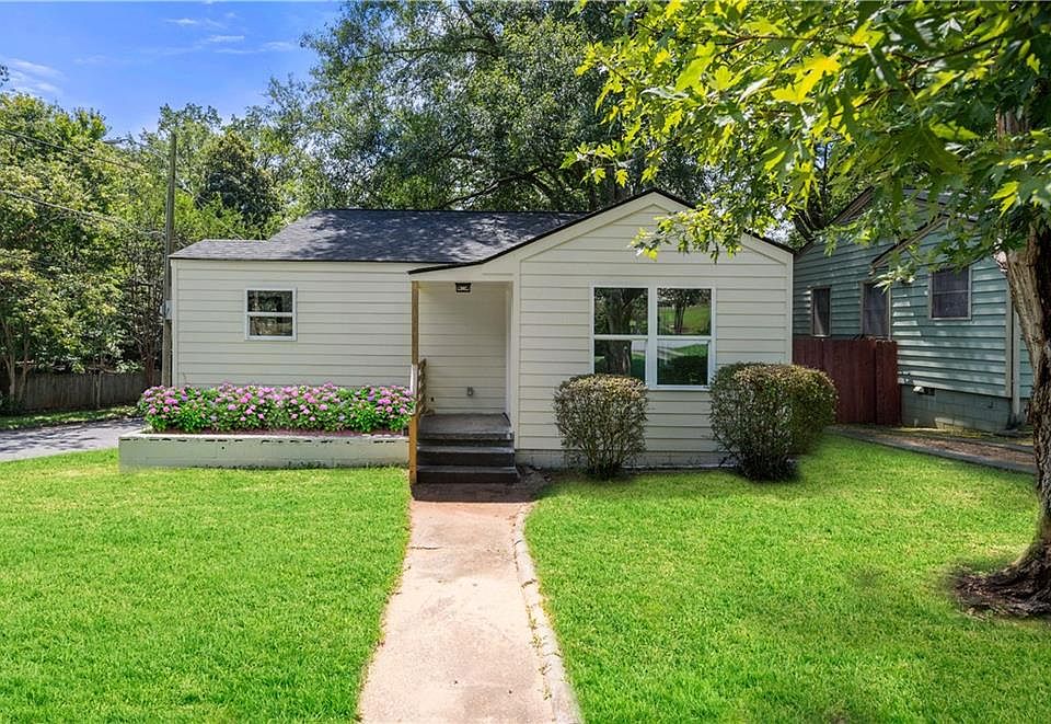 Location, Location, Location! Welcome home to this adorable and easy to maintain bungalow nestled in the charming neighborhood of Jefferson Park. This beautifully renovated home includes all new plumbing, electrical, and HVAC systems. Situated on a spacious corner lot with hardwood flooring throughout, this property offers both style and functionality. Step inside and be captivated by the meticulous updates throughout. The interior boasts a seamless blend of modern finishes and timeless charm. The open-concept layout creates a welcoming atmosphere, perfect for entertaining friends and family. The heart of the home is the beautifully designed kitchen, featuring sleek quartz countertops, classic subway tile backsplash and ample cabinet storage space. Prepare delicious meals while enjoying the company of your loved ones. The hardwood floors add warmth and elegance to the space, creating a welcoming ambiance. For outdoor enthusiasts, this home is a dream come true. The back porch provides the ideal setting for hosting barbecues or simply enjoying the fresh air. This property offers two well-appointed bedrooms, providing comfort and privacy. The bathroom has been tastefully updated with modern fixtures and finishes. The exterior entry full basement area is big enough for a small office, workshop, man cave, or more storage space. Located in East Point, you'll enjoy the convenience of nearby shopping, dining, and entertainment options. With easy access to major highways and public transportation, commuting to downtown Atlanta or the airport is a breeze. See this beautiful home today before it’s too late!