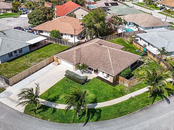 Welcome to this charming 3-bedroom, 2-bathroom home nestled on a spacious corner lot in the residential neighborhood of Sea Pines in Lantana. With over 1800 sq ft of living space and a total lot size of 9471 sq ft, this property offers ample space and a thoughtful layout for comfortable living. As you arrive, you'll appreciate the convenience of the extended driveway and garage, providing plenty of parking for you and your guests. Additionally, the property features a double gate with space to park your boat or RV, and with no HOA or restrictions, you have the freedom to enjoy your recreational activities hassle-free. Sitting on a corner lot, this property provides a sense of privacy and space, all while being close to the beautiful coastal amenities. Lantana offers a vibrant coastal lifestyle, and living in Sea Pines means you're just a 10-minute bike ride away from the beach, passing several dining options along the way. Take advantage of beach living and schedule your private tour today!