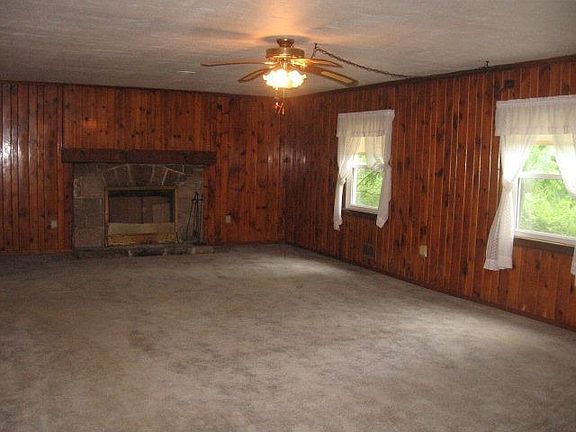 Spacious rancher on 3.72 acres. Five minutes from town or Snyder's Run boat launch. Beautiful setting w/mature trees & landscaping. Large living room has stone wood-burning fireplace. Dining area is off of enclosed porch/sunroom w/sliding doors. Kitchen has nice eat-in bar area. Laundry/utility room off kitchen w/separate entrance from deck area. LR, DR & Kitchen have knotty pine on walls. Bedroom area is unique & starts w/open hallway that has deep storage closets on both sides. Two bedrooms - each have their own bath; nice chair rail around rooms; shutters @ windows. Covered front porch & 24x8 covered back deck. Carport for 2 vehicles/boat. Nice country shed w/patio area. Cats in the home; needs urine treatment & other updates. Appraised at $100,000 AS IS. Offers welcome-negotiable!!