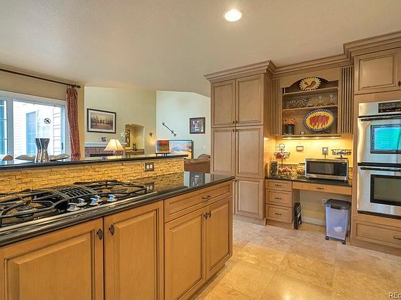 WOW! Live in coveted Stonegate in a home that has it all! This home features a breathtaking entry with a bridge to the bedrooms. Meticulously maintained inside and out! Full kitchen remodel with granite slab, stainless steel appliances including oversize refrigerator, gas stove top, and double ovens. All new cabinets, travertine flooring, custom lighting and custom-painted coffered ceilings in formal dining room! Custom wet bar in family room with granite slab! Beautiful deck overlooking a manicured lawn! The roofing material is incredible- stone-covered steel and comes with a transferrable warranty. Master Suite with five-piece bath with his/her sinks! Turn-key stunning home! Outstanding pool community with incredible schools, tennis courts, parks, trails, shopping, dining, and easy access to E-470! Hurry...won t last!
