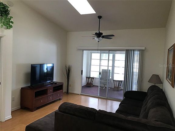 Rare FURNISHED 2/2 with back Florida Room and open patio in gated subdivision. Just bring your toothbrush - everything is ready and waiting! Neutral laminate flooring throughout most of home. Master features King size bed, 2 nightstands, 2 chests plus dresser. 2nd bedroom contains Queen bed, 2 nightstands, dresser and chest. Both Bedrooms have walk in closets and access to bathrooms! Cozy electric fireplace on back Florida room. Large great room with comfy sectional & flat screen TV. There is seating for four in dining area plus bar stools. This is a wonderful space for you to call home!