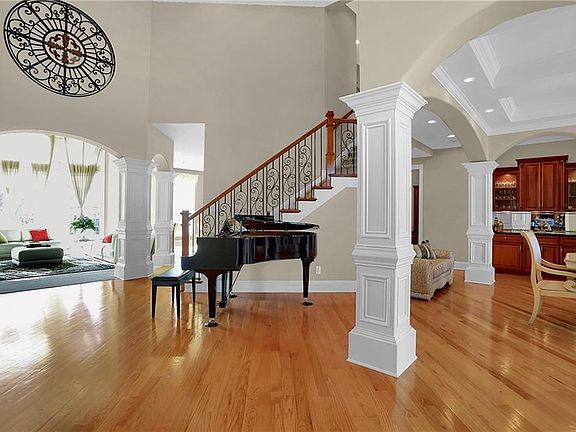 This home has it all! Gorgeous 5 bedroom 7 bath custom home featuring an elegant main floor master suite, huge gourmet kitchen with large gathering area w/cozy fireplace & separate breakfast area, a main floor library/den with built-ins, beautiful 2-story great rm w/ floor to ceiling windows, dramatic coffered ceiling and cozy fireplace & a spacious upper level bonus rm. Finished walk-out lower level makes a great entertaining area w/ spacious family area w/ built-ins & fireplace, rec area & large wet bar. Lower level also offers a 5th bedroom, full bath, exercise rm, bonus room and home office. Large screened porch overlooks an oversize deck and a huge, fenced, tree-lined back yard with basketball goal. This home boasts over 8,000 sq ft.