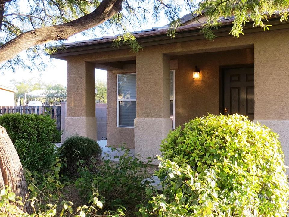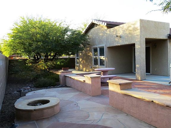 Enjoy entertaining on the Flagstone Patio with Stone benches that are beautifully lit at night. Soothing Spa, Trickling Waterfall, and Built-In Fire Pit enhance the serene setting. Professionally landscaped with mature fruit trees. Stunning white Cabinetry throughout. Island Kitchen features pull-out lower shelving, and a very special wall of Glass Cabinets and Custom Pantry. Desirable, easy clean flooring throughout *Split Floorplan *Expansive Master Bedroom *Custom Built-ins in Master Closet *Cul de sac *Open lands behind *Tile roof *Custom Paint Colors *Wood Blinds all Windows *Highly Accessible Yard with Sidewalks installed on 3 sides *Gated both sides *Steps away from the Community Pool, Playground, Grassy areas and Walking Paths