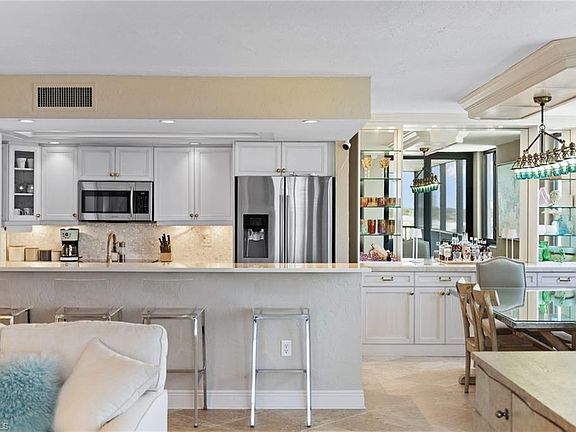 Top floor corner unit! Gulf and Bay views. Rare oversized under building garage included. This beautifully updated top floor 2-bedroom corner condo offers breathtaking panoramic views of the serene Vanderbilt Channel and the Gulf. A rare find, this property includes an oversized under-building garage space, one of only a coveted few that are wide and easily accessible. Valued at approximately $200,000. The recent renovation features an open-concept designer kitchen and impact windows and doors. Two spacious L-shaped lanais, one at the front and one at the back, provide top floor open views of the Gulf of America and Vanderbilt Bay Channel, perfect for enjoying spectacular sunrises and sunsets. This condo is just steps from the beach with private deeded access. Residents also enjoy a waterfront pool, tennis courts, and a beautifully updated lobby shared by only 36 residences at Vanderbilt Bay. This one-of-a-kind condo is your perfect Vanderbilt Beach retreat. Don’t miss this incredible opportunity!