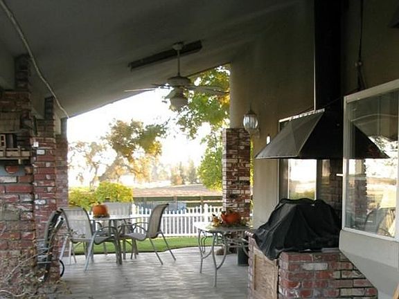 Custom ranch on 20 ac., view of Sierra's, seasonal creek & duck pond. Private lit electric sec. gate & tree lined drv.way. 1st flr spacious interior w/ FR, kitchen, din. & w/ bar. Grt Rm floor to ceiling brick f/p w/ wood burn. stove & knotty pine walls. Pergo flooring in Kit, din. & laundry. Kitchen-Aid appls, newer d/w, built-in gas stove, dbl ovens. Pass-through counter kit to FR & wet bar. MBD w/brick f/p wood burning stove, & walk-in closet. Lrg MBA has block glass in shower & at Jacuzzi tub w/ lights in the tile step & dbl sinks. 3 BD upstairs, two w/ walk-in closets & full bath w/ dbl sinks. Kit, Grt Rm & MBD have custom wd. blinds & vinyl blinds in remainder. Vinyl picket fence around main dwelling. Beautifully designed landscaping, gazebo & rear patio w/blt-in brick gas BBQ. Detach. shop, add'nl detached lrg garage, lrg boat, RV, 2 autos or potent. tack rm for horses & barn & adjacent corral. 2 add'nl water sources for horses in yard. Most of prop. is cross fenced.