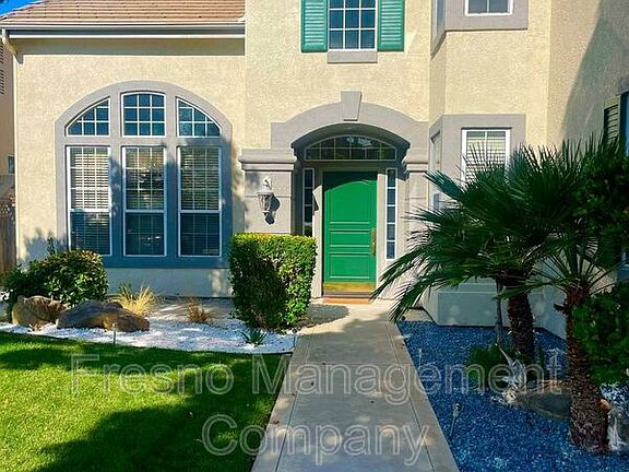 Majestic 2 story - 5 bed/3 bath home w/ shuttered windows in gated Castlegate. Fabulous Clovis schools. LR w/ high ceiling & elegant 12 crown molding. Formal DR features unique chandelier. You'll love the gourmet kitchen w/ electric cooktop center island w/Jenn - air fan to outside. Stainless appliances including refrg/freezer. There's a breakfast bar plus large bay window eating area overlooking garden. Adjoining FR features mantled fireplace, alcove for large TV, corner windows. 6 crown molding, door to covered patio, mature trees in private rear garden & new sod lawn area. There is a downstairs 5th bedrm or library + bath w/ stall shower, wonderful main floor laundry rm w/ sink & 5 ft. shelved closet. Spacious foyer has circular stairway w/ open feeling to 4 upstairs bedrms. Double doors to romantic master suite w/ stained glass ceiling fan & bay window seating area. Privacy water closet, separate his/her sinks, oval soaking tub + stall shower. THIS HOME SHOWS like a MODEL HOME.