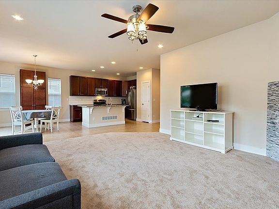 Fantastic value in a Meridian Village Meritage home with 5 bedrooms and 4 baths. Enjoy the savings on paid-off solar panels so your summer electric bill is less than $10 per month. HOA is covered with the rent, so get access to the community swimming pool. Large granite island in kitchen with a single basin sink and reverse osmosis system, stainless appliances, gas range, and additional cabinets. Spacious family room with new carpet features a tiled gas fireplace, ceiling fan, and fabulous natural light. Main level bedroom with new carpet & 3/4 bath to make it a true guest suite! Upstairs boasts three bedrooms including a large master with 5 piece bath, a good-sized loft, and a laundry room with cabinets and rough-in for a basin. The finished basement is a teenager or mother-in-law's dream: bedroom with 3/4 bath, great room and mini-kitchen with a sink, full fridge, and microwave! Need storage? Find plenty in the basement under the stairs and an oversized shelved pantry. The finished 2-car garage faces south (snow melt!). The low-maintenance yard is xeriscaped in the back. 4-minute walk to the pool and just 3 miles to RidgeGate light rail station! The renter is responsible for all utilities, including gas, water, and electricity. The last month's rent is due at the time of lease signing. No smoking is permitted on the premises. Pets are allowed with a monthly fee. The renter is also responsible for maintaining both the front lawn and the backyard.