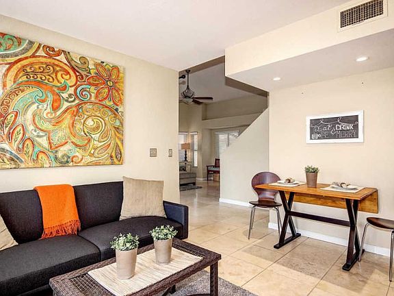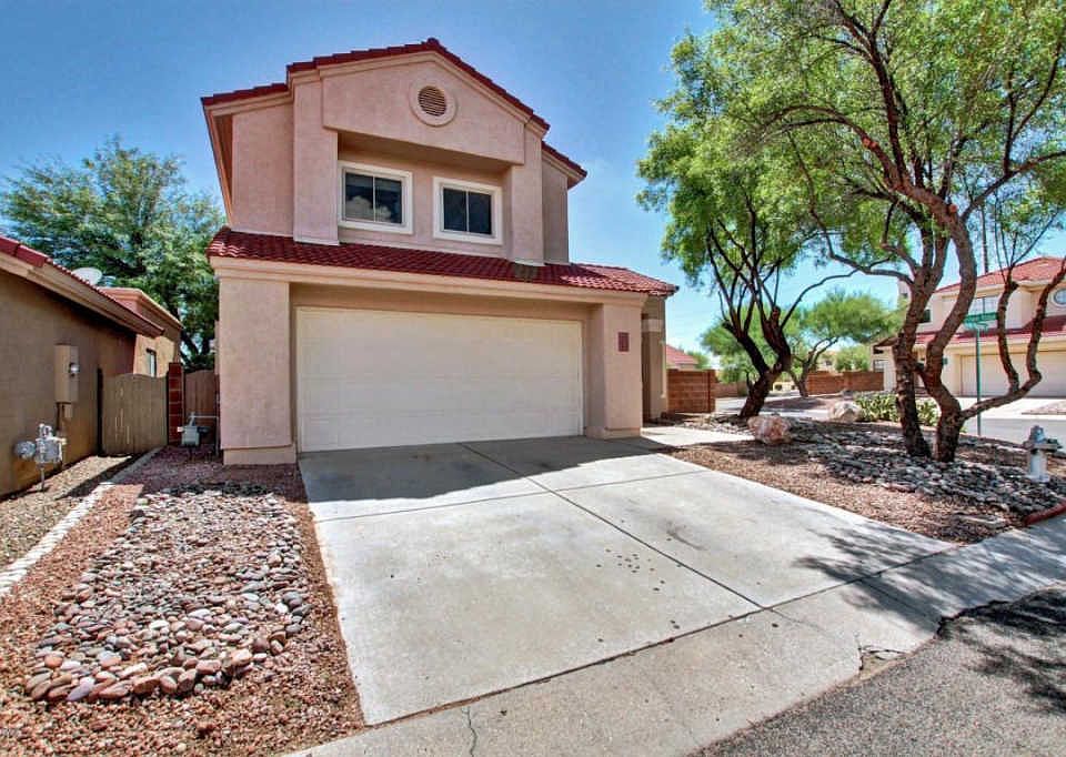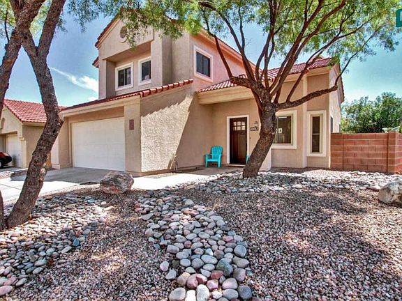 Immaculate move in ready condition! Meticulously maintained, very charming and cozy home. High ceilings, upgraded kitchen appliances, granite counter tops. Lots of natural lighting throughout, open stairway with wood stairs. Beautiful travertine tile. Gorgeous fireplace in living room. Designer paint throughout. Two car garage with built in storage. Landscaped backyard with sprinkler system, pavers, orange and bugambilia trees. Stunning mountain views! Corner lot in a very well maintained desirable Oro Valley neighborhood. Easy access to community jogging path and running path, pool and hot tub. Walking distance to Riverfront Park. Close to shopping centers.