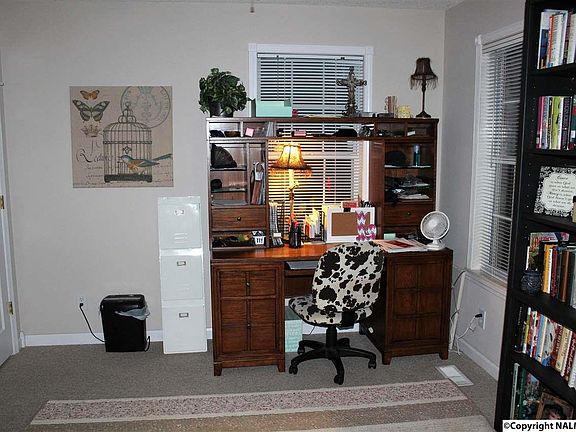Looking for a central location to call home. Just inside the Etowah County line you'll find sitting on a small knoll w/ a view of Lookout Mt a large home w/ room to accommodate family and friends. Walk onto the inviting country front porch and on into the house that gives the feeling of home. Large eat- kitchen w/ oak cabinets and appliances to remain. To the right of kitchen, the laundry room with double entrances. Family room offers soaring ceilings & opens to a covered back porch & patio. Master suite on main level and quest room with bath. Office / formal dining room just off the foyer. 2 quest bedrooms and finished bonus room upstairs. For the man of house...oversize garage!
