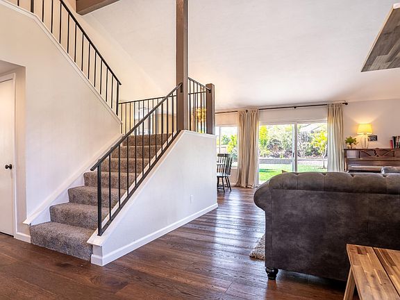 Experience absolute serenity in this stunningly remodeled 5 bedroom 2.5 bathroom 3 car garage home located on a pie-shaped cul-de-sac lot in the extremely desirable community of Mira Mesa West. Right down the street from A-rated schools and a beautiful park, this home has owned solar, a newer roof, newer windows, newer wood floors, and is freshly painted inside and out. The kitchen features butcher block counters, solid wood cabinets, a large farmhouse style sink and white tile backsplash stretching up to the ceiling! The master bath features a deep soaking tub and an open waterfall shower. The 5th bedroom is currently a large and bright playroom! The huge yard is fully fenced for privacy and has fruit trees, a shed and an awesome treehouse - Perfect for kids and entertaining! Make this dream home yours today!
