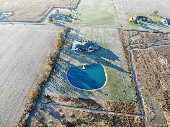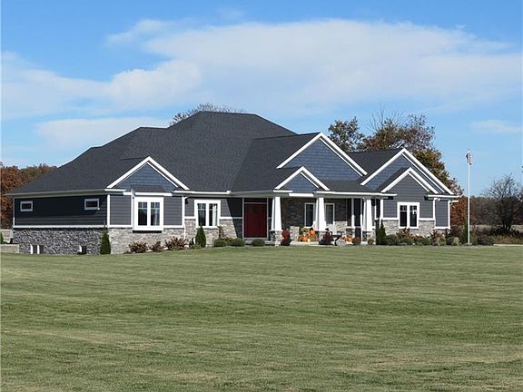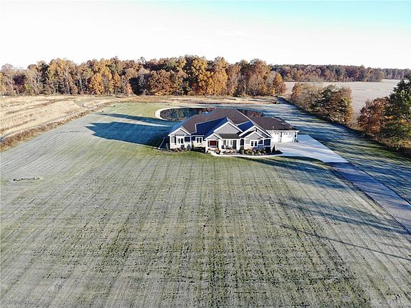 Everything you see will please you. 6+ acres with a pond that this 3,000+ sq. ft. home sits on comfortably back from the road for complete privacy. The home is unique with a huge great room with a cathedral ceiling, a double faced fireplace for inside and outside enjoyment, a fully equipped kitchen featuring a great island, a dining room and a large office with built-ins for convenience and with frosted doors for privacy. The split bedroom floor plan is ideal with the master suite overlooking the pond and the two family bedrooms featuring their own full baths and walk-in closets. The basement is framed for finishing and the 4 car garage is a HUGE bonus with its own half bath and access to the basement. A GREAT PLACE TO LIVE...INSIDE AND OUTSIDE!