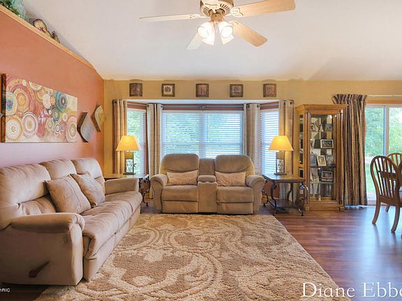 Don't miss out on this very special and spacious ranch home on one acre, conveniently located just a close drive North of the village of Rockford. This home is only 14 years old, aprox 2800 total sq ft of beautifully maintained living space that includes 3 main floor bedrooms and 1 bedroom in the finished lower daylight level. The lower level also has very nice new carpet and even a 2nd kitchen area! I love the paint colors in this house, you can tell a lot of love went into it. On the main floor there is newer flooring in the living and dining room, and a very spacious high ceiling open concept and a cozy fireplace.