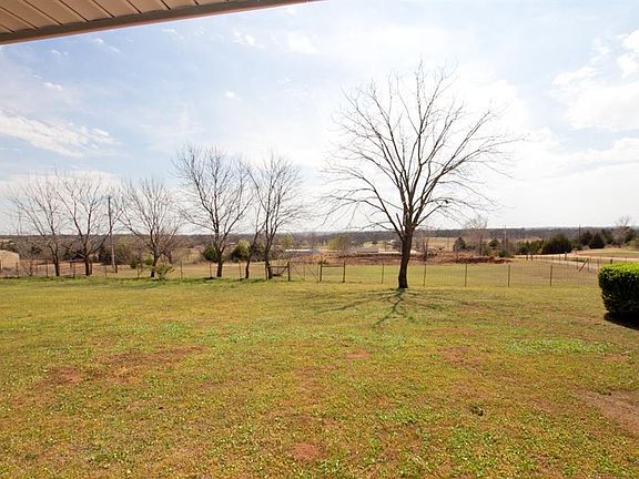 Beautiful view from front porch looking out over the 33' deep pond. All appliances included! New Whirlpool Dishwasher, New Metal Roof and Facia in June 2016, New Hot Water Heater and Well Pump in Sept 2016. LP Gas fireplace with thermostat, 2.63 Acres completely fenced, Rural with no restrictions. 24x30 workshop with Iron beams and 220 wiring. Must see! This house has a split floor plan and there is room for plenty of customizations. You really have to see the land/pond to appreciate the value this property holds. Small town country feel being just on the outskirts of Harrah. McLoud school district. 20 minutes to Shawnee or MWC & 25 minutes to Tinker.