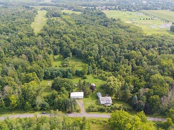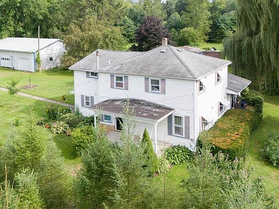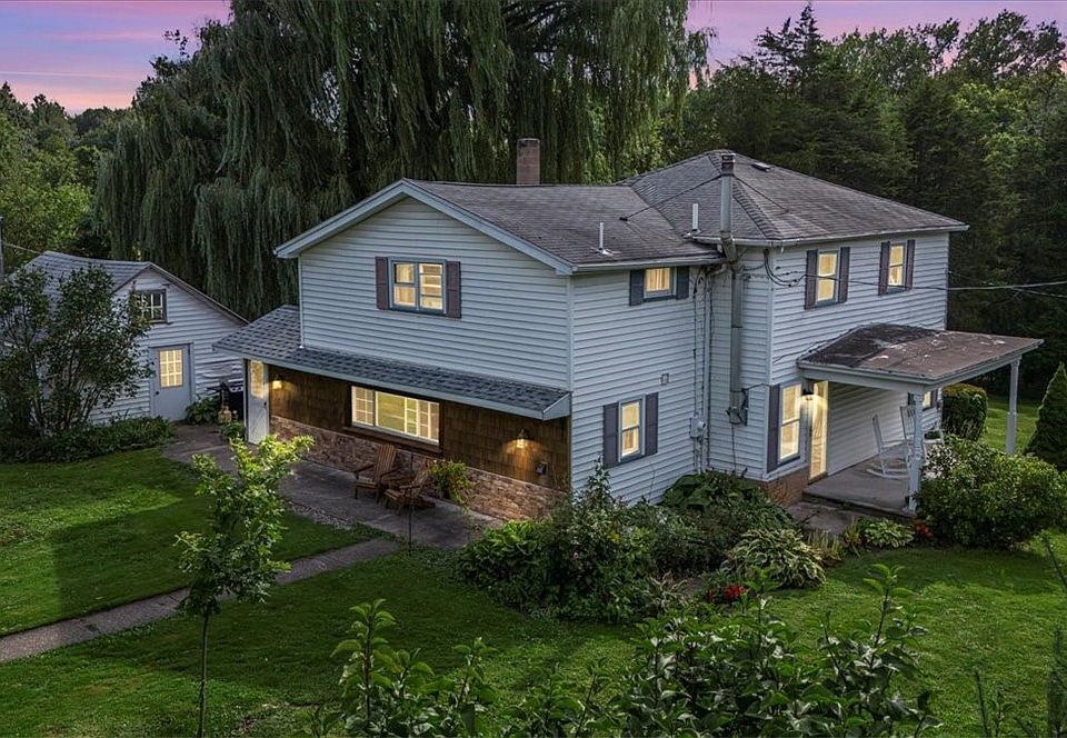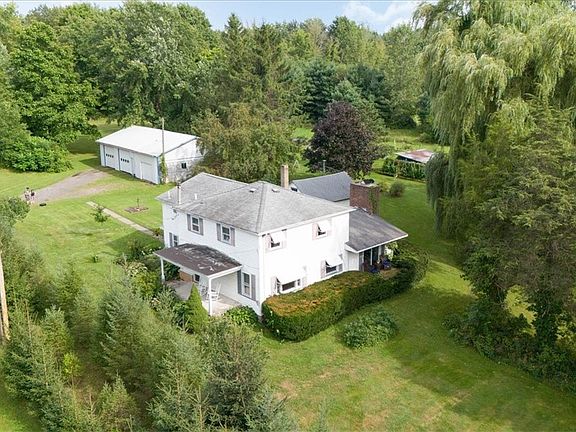 Your hidden countryside oasis awaits you on a quiet, dead-end street nestled in the town of North Rose, NY. Over 56 acres of lush real estate plentiful with wildlife and trails for hunting and hiking and chock full of ash, black walnut, maple, hickory, and pine trees! This two story farmhouse boasts an updated kitchen with custom built cabinetry and updated bathrooms. There are custom built-ins and handcrafted furniture in every room. Design elements throughout the home utilize natural elements from the property itself. Closets galore for storage. A cozy deck off the living room beckons you to wind down from the day. Multiple outbuildings include a large three car detached garage as well as a fully functional carpentry shop with electric and a wood stove, and a shed. There's even a generously stocked woodpile already there for your use in the upcoming fall and winter! A plentiful vegetable and fruit garden is just steps away from the house as well as a large grassy area to the left that has been used as a personal sports recreation area. This is the home you have been waiting for! Open house 8/25/24 from 1-3 pm. Delayed negotiations 8/27/24 at 2 pm.