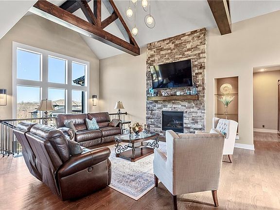Welcome to this immaculate, move-in-ready home nestled on a private treed estate lot in coveted Hidden Lake Estates. As you enter through the double doors, you'll be greeted by an open floorplan with beautiful hardwoods, expansive windows and cathedral ceilings, showcasing stunning exposed wood trusses. The kitchen is a chef's dream featuring stainless steel appliances, soft-close cabinetry, a large granite island, gas stovetop and a generous-sized pantry with convenient grocery door from the garage. Step onto the covered deck from the kitchen/dining area, ideal for outdoor entertaining, with stairs to the backyard. The oversized primary suite on the main level offers access to a private deck, perfect for enjoying morning coffee or an evening cocktail. The spa-like en-suite boasts separate vanities, a stand-alone soaker tub and a walk-in shower with dual heads and body sprays. You'll love the large closet with custom cabinetry. Behind custom wood barn doors on the main level, there's an additional bedroom with an attached full bath. Descending to the lower level, you'll discover more than just a standard walkout basement. With 2-story windows, nearly 10 ft. ceilings, and an open staircase, the grandeur is evident. A dramatic custom bar welcomes you into the large family room, complete with built-in cabinetry. An additional living area offers even more space for entertainment, while a small reading nook under the stairs adds charm. Two bedrooms and a full bath complete this level. Walkout to the treed, private, partially fenced backyard featuring a patio and tranquil water feature. Ample storage throughout the home and a central vac add convenience. Notable updates in the garage include epoxy flooring and dog wash. Enjoy Cedar Creek’s neighborhood amenities-clubhouse, exercise room, party room, pickle ball/tennis courts, sand volleyball, swimming pools, trails, lake and access to Shadow Lake golf course. Don't miss the chance to make this your new home!