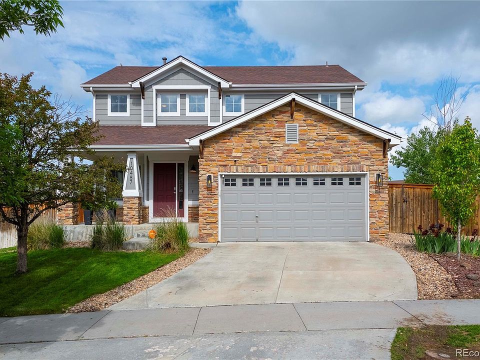 Awesome two story in Buffalo Mesa that’s truly turnkey ready! This home is ready to move in with upgrades throughout including newer Oak hardwood floors, new railings, interior paint, and lighting. The layout is perfect for entertaining, with a dining area that can be used as a front living room opening to the bright family room with built in entertainment center and paneled wall. The family room flows into the beautifully updated kitchen with granite counters, herringbone tile backsplash, refaced cabinets, newer sink, built in bench for additional seating and new Stainless-Steel appliances, all included! Upstairs offers an open loft with an inset office area, two secondary bedrooms with new carpet, a full hallway bathroom with new vanity and tile flooring. The large primary suite offers hardwood flooring, paneled wall, dual closets and updated full bathroom with new tile flooring and new vanity. The unfinished basement gives you room for storage and offers you the opportunity for future living space if needed. Plenty of room for outdoor entertainment on the large deck and good-sized backyard that’s fully fenced and features a garden area with drip system. Not only is the home fantastic, it’s in a great location with access to the community amenities such as the pool, several parks, trails, open spaces, restaurants, and shopping. Easy access to E-470 and major routes for convenient commuting to DIA, Denver and Boulder. This home offers it all with upgrades throughout while being perfectly located, don’t miss out!