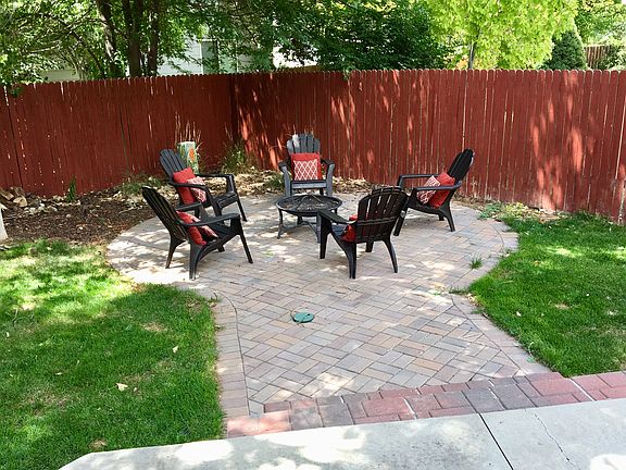 Adorable 2-story 3 bed, 2 bath home in desirable Ridge Crest! Open flr plan, hardwood floors on main floor, soaring ceilings, great natural light and gas fireplace. Living/Dining area overlooks a huge patio and additional paver patio with established trees. Main flr laundry, new carpet, all appliances included, new faucets throughout. Unfinished basement for storage/finish. Close to walking paths, play grounds, shopping, restaurants, & schools. Wood artwork in living room included in the sale.
