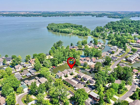 Beautifully updated 3 bed/2 bath freestanding condo on Tecumseh Island at Indian Lake! Large corner lot, peaceful channel views, two boat slips, 1-car garage, & extra parking space! Inside features an open floor plan, gas fireplace, cathedral ceilings, new paint, flooring & carpet throughout! The kitchen boasts leathered granite counters, beverage fridge, & SS appliances. Convenient first-floor bedroom & full updated bathroom. Upstairs features 2 beds, 1 bath w/ double sinks, & spacious loft that can be used as an additional living room or sleeping space. Walk outside to the gorgeous patio and relax under the Sunsetter electronic retractable awning & sun shade. Jet ski dock and electric boat lift included! Appliances, washer & dryer stay. Some furnishings negotiable. HOA fee $525/quarter.