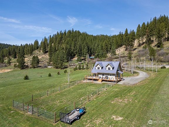 Come find yourself nestled in the perfect 2 story cabin on a sprawling 5 acres with snow capped views of Icicle Ridge and Eagle Creek babbling through your backyard in the magical 4 season town of Leavenworth. Cozy up to the fireplace while taking in the mountains or entertain your guests on the expansive deck for afternoon barbeques. The property comes equipped with a tankless water heater, fiber optics, 4 zone sprinkler system and a 260 sq ft cedar shed with ample storage for all your toys. Plenty of elbow room and beyond the creek the property borders National Forest to the south. Minutes from downtown but away from it all this immaculately maintained home is perfect for your weekend getaways or for fulltime living.