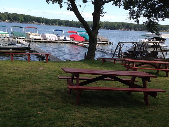 Large family room and spacious kitchen. 2 bedroom and 1 full bath with dual sinks. Laundry room, sun room and fireplace. Central heat (natural gas) and window a/c unit. Steel roof. All appliances included. Large detached garage. Lake access to all sports 400acre Eight point lake. Small fee to dock boat at private community area. Lot is actually 3 full lots. All three are 60X135 making the total lot size 180X135. Lots 2,3, and 4.