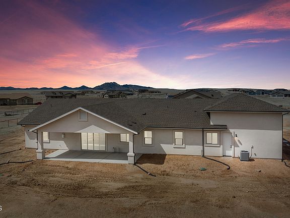 Gorgeous, new construction, open-plan concept home on a prime elevated 2.09 acre fully fenced homesite with gated entry. Panoramic views Granite Mountain, Glassford Hill, and the Bradshaw/Mingus Mountain ranges set the backdrop to this single level home with outstanding curb appeal and RV garage. High-volume ceilings and wood-grain plank tile flooring welcome you into the foyer, formal dining area, great room and kitchen. Floor to ceiling stack-stone gas fireplace is the focal point of the great room. The attractive kitchen features stunning wood-stained alder cabinetry with crown molding and soft-close doors and drawers, under-cabinet lighting, gleaming granite countertops and farm sink. Contrasting antique-white cabinetry on the kitchen island is accented by pendant lighting,