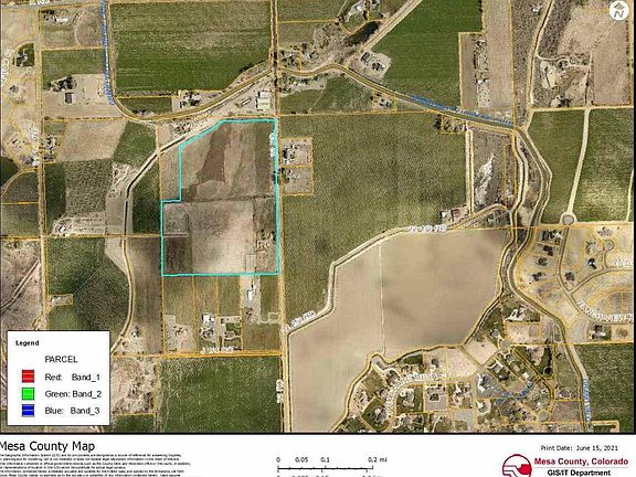 44.86 acres of fertile land with spectacular views and privacy in the heart of Farm Country between Grand Junction and Fruita Colorado. 67 shares of Grand Valley irrigation company water stock. The old house, barns and corrals will be cleared and the land will be delivered to the new owners with a residential water tap, a great building site and some perimeter and cross fencing.