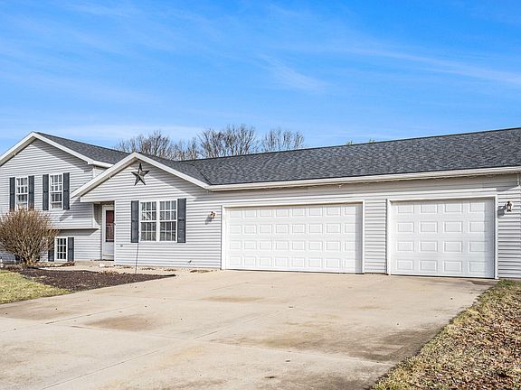 This 4 bedroom, 3 bath home w/brand new Furnace & AC along w/newer roof and siding. Also features huge 3 stall garage on massive size lot w/an adorable updated kitchen w/updated countertops & backsplash and plenty cupboard space. Home is on 2/3 of an acre w/large triangle lot that gives you a country feel in a neighborhood. Not often you find a home w/three full baths. Upstairs features 3 bedrooms including the main bath and primary bath. Main level has kitchen, dining room & livingroom w/vaulted ceiling over all of it w/slider out to large deck. Lower level has a large rec room, 4th bedroom and 3rd full bath and there is also a basement w/plenty of storage area. The 3 car garage includes a double door and a single door & plenty of room for all your toys or boats. Most of the backyard childrens play area could stay. City sewer with well water means you can water all you want yet dont have to deal with a septic system. for $324,900 this place will go quick. Reserved items include dome play climber in backyard, kegerator, fridge in garage and freezer in basement.