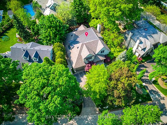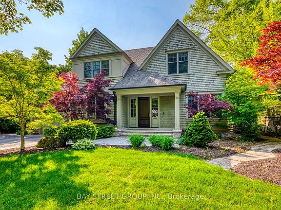 Situated on a quiet cul-de-sac in Morrison, this Gren Weis designed, Hallmark-built Detached residence offers 5,687sqft (3745+1942sf bsmt) of luxury across three spacious levels, including 4 bedrooms and 5 bathrooms. Cedar shake exterior, copper accents, and lush professional landscaping create a unique curb appeal in one of Oakville's most sought-after enclaves. Sitting on a quiet family friendly street, spacious garage parks 2 cars, and long driveway with no sidewalk! The interior detail blends timeless elegance with family functionality. The chefs Kitchen features premium appliances, custom cabinetry, and walk-out to a private, covered rear patio perfectly paired with a vaulted Family Room rich in character, natural light, and coffered ceilings. Formal living and dining rooms flow seamlessly for refined entertaining, while a main floor Office offers a private workspace. Upstairs, all bedrooms feature their own ensuite bathrooms, with the primary suite boasting a private balcony, expansive walk-in closet, and a spacious spa-inspired bath. Thoughtfully spaced secondary bedrooms ensure comfort and privacy for family and guests. The fully finished lower level is designed for relaxed living and recreation complete with a retro-style bar, fireplace, gym, fourth bedroom, and 3-piece bath. Close to top-rated schools including New Central (JK-6), Maple Grove (Gr 7-8), Oakville Trafalgar High School, E.J. James Public School (French Immersion), and esteemed Appleby College. Minutes to the QEW, Oakville GO Station, and Gairloch Gardens. Move-in ready! Minutes to the QEW, Oakville GO Station, and Gairloch Gardens. Move-in ready!