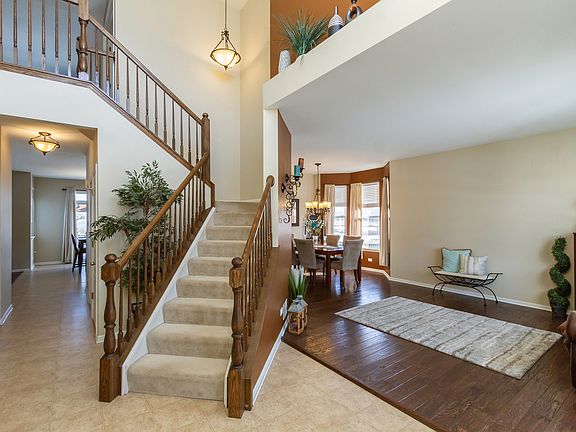 Sought after Sterling model shows like a model home! Dramatic two story foyer with stunning chandelier leads to an open and airy living room and dining room, with a bay window and pass through to the kitchen ~ perfect for entertaining. The gourmet kitchen includes stainless steel appliances, new beautiful stone backsplash, island, pantry closet, and eating area with slider to patio with pergola. One of the few homes in Cambridge Lakes with a cozy fireplace overlooking the picturesque backyard. Convenient first floor laundry is a dream! Updated with built in cabinets, hardware and a utility laundry sink. Upstairs features a large loft~perfect office or play room! The master suite boasts vaulted ceilings, walk-in closet with amazing built-in closet organizer, and luxury master bath with stand up separate shower, double sinks, and granite counters. The bedrooms are HUGE and have great closet space throughout! In addition, the full basement with infrared sauna is just waiting to be used. Outside, relax on the new stamped concrete patio that overlooks your private, fenced yard with a pond view. Access to the clubhouse, pools, exercise facilities and so much more! Great home in a great location!!