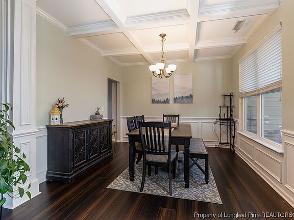 Welcome to your home in the exclusive Carolina Lakes community. At first glance you will notice the grandeur of this four bed, three full bath home. Coffered ceilings in the dining room, cosmetic upgrades to the fireplace and fresh paint throughout are just a few details that will stand out in addition to the standard beauty 1049 Coachman offers. As you enter the primary bedroom be prepared to be wowed by the stunning office space, with custom built ins. In addition to custom built ins in the office space you will find the same attention to detail in the primary walk-in closet. This homes bellows luxury living. Don't stop inside the house because the backyard offers just as much. Fully fenced in yard, wooden pergola and shed are yours to enjoy. In addition to this home, enjoy the lake, pools, golf, new pickle ball courts and so much more that this community has to offer. Schedule a showing today! ** Offering $2500 Buyer Credit to use how they choose! **