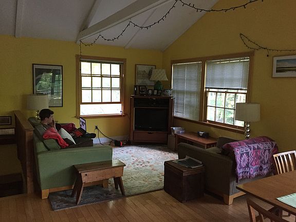 Single family home, walk out basement, large deck, 2.8 acres. The property has a detached two car garage with apartment above it that currently rents for $1,100/month.