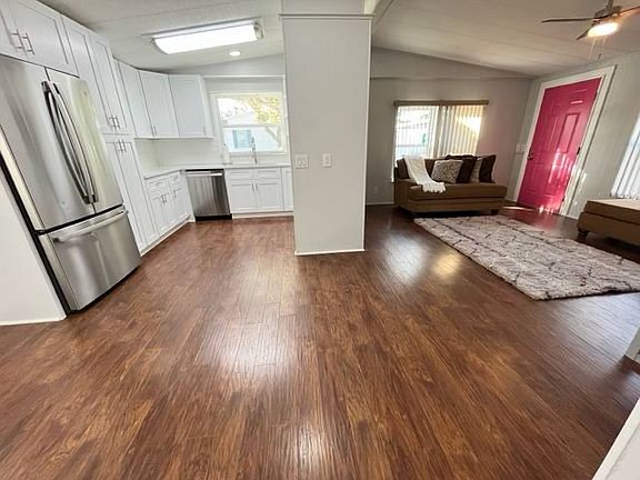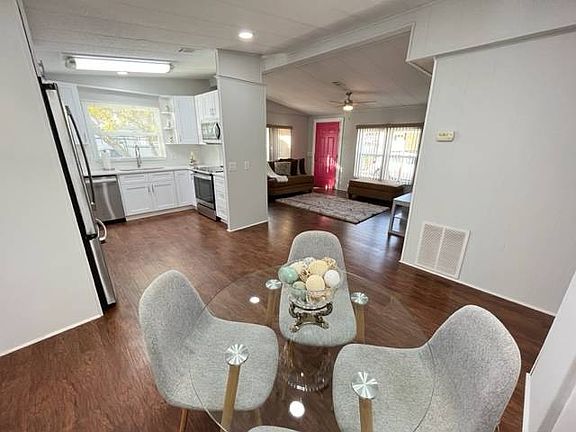 Located in quaint Tarpon Springs, Tarpon Glen is a 55+ retirement mobile home community which features on-site fishing, shuffleboard, and a community swimming pool all set among the beautiful palm trees that the area is famous for. Tarpon Glen also offers you a spacious clubhouse to host social gatherings and organized community outing and planned activities. Enjoy the nearby beaches, state parks, and world-famous Sponge Docks. This 1984 home is just 3 homes away from the pool and clubhouse. You will love the central location of this home in Tarpon Glen! This home has had a complete remodel. The home has a new roof that was installed in 2022, the vapor barrier was repaired, new outlets throughout the home, CPVC pipes installed in 2022, new bathrooms, new kitchen, new paint inside and out, painted concrete in the lanai and carport, all new stainless steel appliances installed in 2022 and includes a warranty, cathedral ceilings and vinyl double hung windows. The living room has neutral walls and floors, front door entry and an accent wall. There is an upgraded ceiling fan and it is open to the dining area. The kitchen has been completely remodeled with NEW soft close cabinets, quartz counters, new stainless steel appliances, LED lights and a large pantry. There is a tile backsplash, laminate floors, and neutral paint. New sink and fixtures, new outlets including GFCI outlets. This is truly a DREAM KITCHEN! The master bedroom is a large room with laminate flooring, neutral walls, a new ceiling fan, and a very large walk-in closet. There are 2 windows that let in a ton of natural light and a beautiful ensuite that has tile flooring, custom tile step-in shower, high toilet and vanity, a large linen closet and an detailed accent wall. The second bedroom is the perfect size for family and friends. There is laminate flooring, neutral walls, a double closet with mirrored doors and a new ceiling fan. The guest bath has tile flooring, a custom tile step-in shower, new vanity, new fixtures and a barn door. The lanai is where you'll want to spend all of your time. It is a great outdoor space with freshly painted concrete floors, new screens, and side door entry to the home. The shed is large and has newly painted walls and floor, a new washer and dryer with warranty, a utility sink and workbench. All Florida Mobile Home Sales Inc. cannot guarantee or warrant the accuracy of this information or condition of this property. The buyer assumes full responsibility for obtaining all current rates of lot rent, fees, and pass-on costs. Additionally, the buyer is responsible for obtaining all rules, regulations, pet policies, etc., associated with the community, park, or home from the community/park manager. All Florida Mobile Home Sales Inc is not responsible for quoting of said fees or policies. LOT RENT: $730 and includes water, sewer, lawn, trash and taxes.