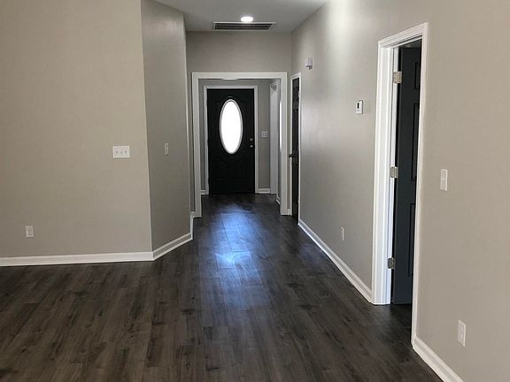 NEW CONSTRUCTION!! ONE LEVEL!! Stunning 3 bed 2 bath, 2 car garage, crown molding, 12' vaulted smooth ceilings, designer paint colors, no step walk in shower master bathroom, office area off master bedroom, 8x8 walk in master closet, tile and luxury vinyl flooring throughout house. recessed lighting, quartz counter tops in kitchen, comes with stainless dishwasher, stove with glass cooktop, and over range microwave, lighted ceiling fans in all bedroom, fireplace, covered back patio, attached outside storage room fenced in backyard with new Sod yard. Includes 1 year home warranty. 100% financing is available through USDA!