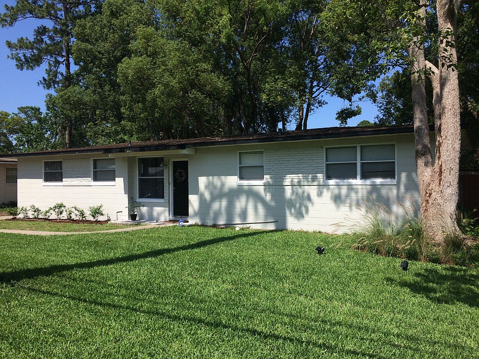Investors or first time home buyers will love this 2/1 home with an extra room that can be used as an office or converted into another bedroom. Updated bathroom shower and sink, wood laminate floors throughout and spacious yard. Utility room and shed. Located in Glynlea Park close to Tinsletown and St Johns Town Center. Home sold as is