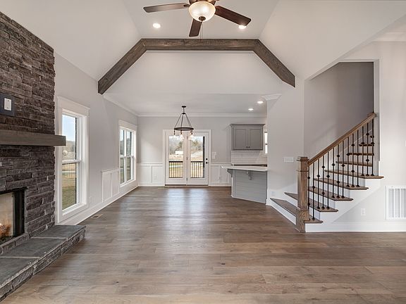 $20,000 toward closing cost and/or rate buy down with Preferred Lender Incentive!. Exceptional Quality Construction by Eastland Construction Inc., Dakota floor plan, Living rm w/ Hardwood Floors & Stone fireplace, Kitchen with Custom Maple Cabinets, Tile Backsplash, Hardwood Floors, Quartz tops, Microwave, and Dishwasher, Primary BR on Main Level with Large Bath w/ Separate Shower and Large Tub, Double Vanities, & Quartz Tops, Tile in Baths and Full Utility Rm, 28x19 Recreation Rm w/ pre-wired Surround Sound, Covered Back porch and Open Patio Area.