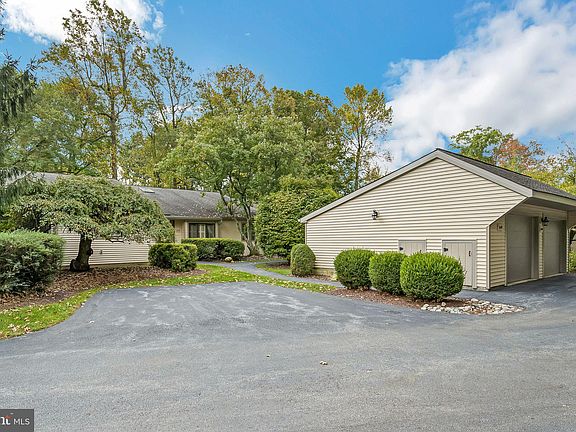 Welcome to this lovely and well maintained Marlborough Model. You will enter this lovely home by a level walkway and a colored flagstone patio with no steps (a must for some). As you enter the home, your eyes will be drawn to the lovely hardwood floors and the spectacular view of the golf course. The Kitchen has newer tiled floors, Corian countertops, cherry cabinets, newer appliances. a ceiling fan , shuttlers and is painted a neutral color. The Breakfast area has a window seat and a two-door entryway into the Dining Room. The Dining Room has hardwood floors, a tray ceiling, wainscoting, crown molding and is a neutral color. The Living Room has hardwood floors, cathedral ceiling and a wood burning fireplace From the Living Room you enter the Deck. The Deck, which has been recently stripped and stained, sits up high overlooking the golf course offering spectacular views. (area is great for entertaining or just sitting out relaxing) The Hall Bath has been updated with a glass walk-in shower and has a skylight making this room nice and bright and the Washer/Dryer are located behind louvre doors. The third bedroom which is used as an office has a window seat, crown molding, a built-in cherry credenza and cherry enclosed shelves, recessed lighting and is carpeted. The Second Bedroom is carpeted, ceiling fan and crown molding. The Master Bedroom offers views of the golf course, is carpeted, crown molding, ceiling fan, plantation shutters and has two walk-in closets. The Dressing Area has been updated with beautiful tiled floors, new lighting and a one-sink vanity. The Master Bathroom has also been completely updated with new tiled floors, a new glass shower, planation shutters, a one-sink vanity and two skylights making this bath nice and bright. The Finished Walk-Out Basement is great for entertaining or having guests over and boasts a large room with many daylight windows (nice and bright) that can be used as a bedroom or office that has a walk-in closet, a full bathroom, a room with lots of cabinets and counter space, a couple of rooms that have shelving for extra storage, a large area that is nice and bright with a bar and a slider that goes out to a small patio facing the golf course. Hershey's Mill offers many activities and amenities such as tennis, pickle ball, the garden area, wood shop, etc. The Golf Course membership is available for an additional fee. Come make this beautiful home yours and start living the lifestyle of the "Mill".