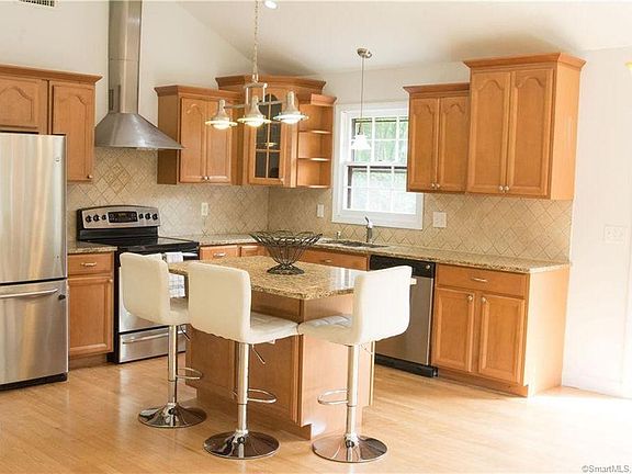 Tranquil and Very Private. Almost 2 acres of level property with a park like setting. Set back with pond and surrounded by mature plantings. The main level of the home has hardwood flooring throughout. Vaulted Ceilings With Recessed Lighting.Home has been freshly painted inside and out. The floor plan is perfect for family gatherings and celebrations. Granite Counter Tops And An Island/breakfast bar. Off the kitchen are sliders leading to an expansive deck where you can enjoy a cup of coffee or glass of wine. There are three bedrooms on the main level, all with hardwood and a good sized full bath with granite and two sinks. Finished lower level with fireplace and den/office. Two bay garage and barn. Nearby to I-84 as well as shopping and restaurants.. Turn key!..Good Credit, Proof of salary and references a must.. Tenants responsible for utilities, house maintenance (landscaping, snow removal and trash)