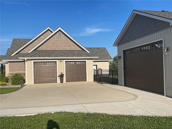 You are not going to want to miss the opportunity to own this outstanding newer lake home!  It features a new Great room filled with light from the many windows and the warmth of the beautiful stone gas fireplace makes it the perfect room for entertaining.  You can walk out from this room to the inviting patio area w/ lake view and enjoy the 2nd lot which gives you more privacy and spacious outdoor area.  The kitchen area is a chefs delight w/ plenty of workspace, floor to ceiling white cabinetry, quartz countertops, coffee bar, pantry, SS appliances, and an inviting eating bar w/ gathering area.  Master bdrm has large walk-in closet, private bath w/ tub-shower comb.  2 guest bdrms all w/ lg closets.  Guest bath w/ shower tub comb.  Washer/ dryer located in hall area.  Entire home has engineered hardwood except baths which have tile.  Custom shades w/ remote, 10 ceilings.  This home has been built w/ design, function and beautiful decorating detail.  It is definitely move-in ready and so convenient for all ages being all on one level, no stairs.  The attached 2 car garage is oversized, has an enclosed area for water heater & furnace, storm cellar area for inclement weather, attic stairs to area that could be finished for more living space.  A large, detached garage for boats, other toys, or "Man Cave", concrete driveway and iron fenced area for your furry friends or little ones to play in.  Beautiful mature professional land scaping already in place.  Located within walking distance of Beach 3.