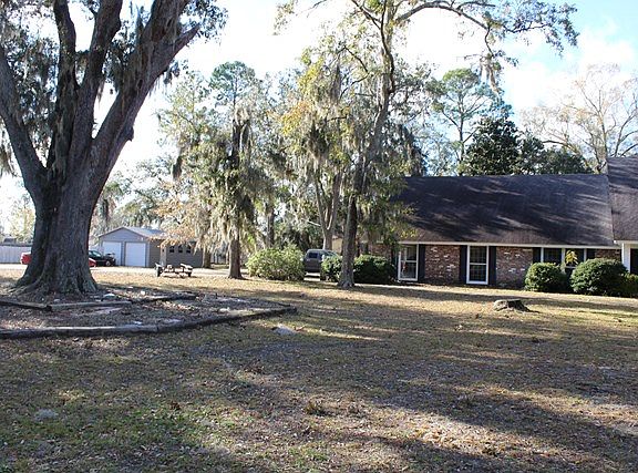 This one of a kind home 3200 SF home located in the center of Hinesville on 1.5 acres features oversized formal dining room made to entertain, large bonus/game/theater room above garage, screen enclosed swimming pool and fenced in yard, 20 x 30 workshop with power, and much more. Master bedroom is oversized with luxurious spa-like bathroom and walk-in closets. Vaulted ceiling with wood beams in living room. All four bedrooms are on main floor. No HOA Fees. Property to be sold as is.