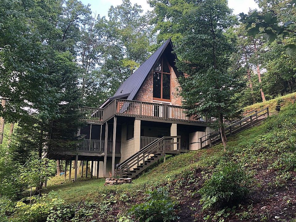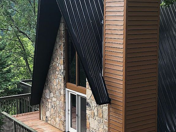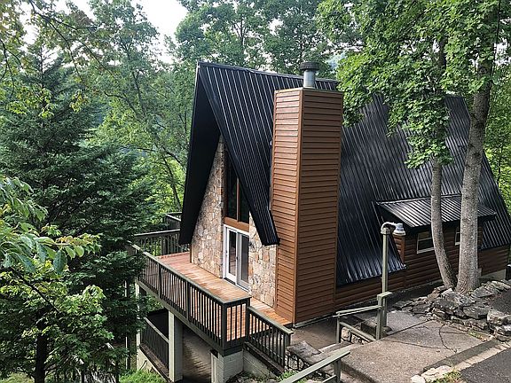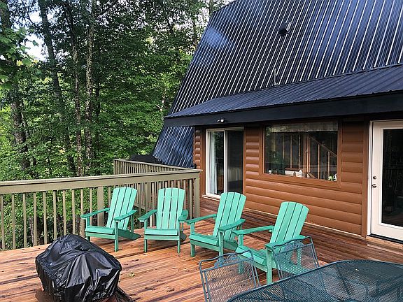 1.5 Story A-frame with full basement. Upper and lower decks.