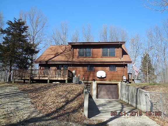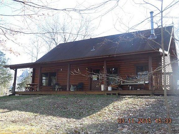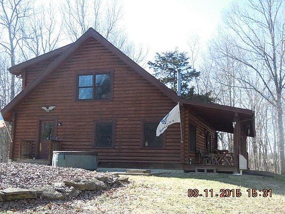 Enjoy the tranquility of this 1947 square foot Jim Barna yellow pine log home secluded in the middle of 20 wooded acres among deer and wildlife. Enter the great room and view the vaulted wood beam ceiling or the oak flooring that was harvested from the farm. Grab a book to relax by the wood stove on the stone hearth with beautiful wood mantle. The kitchen boasts gorgeous oak cabinets with appliances remaining and tons of counter top space. Master bedroom on the first floor with double windows for the view and large closet. Large full bath right off the great room. Two additional bedrooms, attic storage, full bath and setting room on the second level. Take a stroll to rest awhile on the covered front porch. A few extras include a large utility room, 2 atrium doors, dual heat, full unfinished walkout basement, double pane windows, wrap around deck and hot tub. The barn features water, electric, 3 horse stalls, 2 car garage and inside/outside dog pen. Call today for a private showing!
