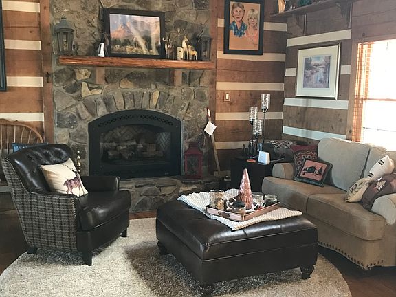 This unique CUSTOM BUILT LOG HOME sits atop a small ridge with incredible views overlooking Laurel Run Park and the Holston River. Vaulted ceiling and beautiful stone fireplace accentuate the great room which is open to the dining area and kitchen. The dining area welcomes the outside views through large French doors while a vintage corner cabinet adds to its charm. Keeping with the natural decor the kitchen has marble counter tops, open beam ceiling and awesome stone floor. The main level master bedroom features an open beamed ceiling, athentic barn door and French doors to enjoy breath taking views. The adjoining master bath offers separate vanities created from antique furniture, tub and shower. A cozy den with lots of natural light and a gas stove completes the main level. Upstairs the spacious loft could be divided into 2 separate bedrooms, or one bedroom with a sitting room. Separating the loft area from the large bathroom is another custom barn door. Solar panels and a geothermal heating/cooling system make this home incredibly efficient (power bills less than $40/ month!). A 30' x 50' detached,insulated garage/workshop with concrete floor and wood stove, provides great storage. Porches across the front and rear of the home welcome you to bask in the privacy and beauty of the surroundings. This personal resort is only 10 minutes from Church Hill, 20 minutes from Kingsport and 30 minutes from Johnson City! Asking $400,000